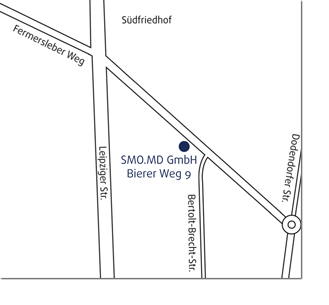 Sie erreichen uns mit den Straßenbahnlinien 6 und 9, Haltestelle Kreuzung Leipziger Str./Fermersleber Weg. Die Praxis befindet sich unmittelbar hinter der Schule an der Ecke zur Bertolt-Brecht-Straße. Sollten Sie den Weg zu uns nicht allein bewältigen können, holen wir Sie selbstverständlich von zu Hause ab und bringen Sie auch wieder zurück. Dadurch entstehen Ihnen keine Kosten.